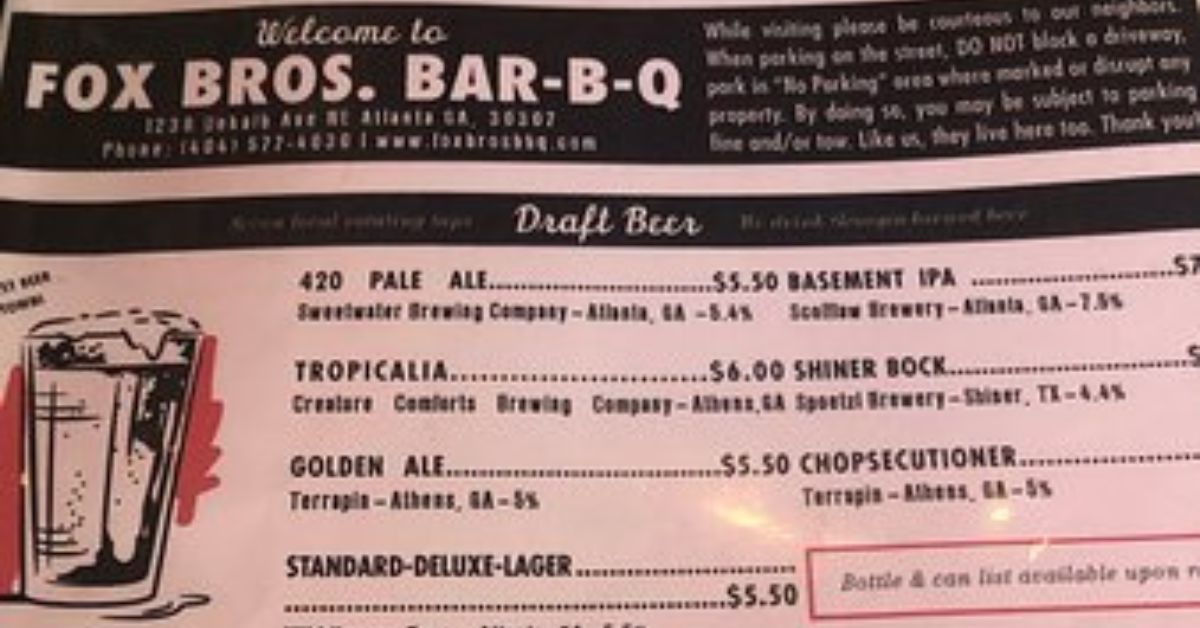 Fox Brothers BBQ Atlanta Menu (Full Update Menu 2026)