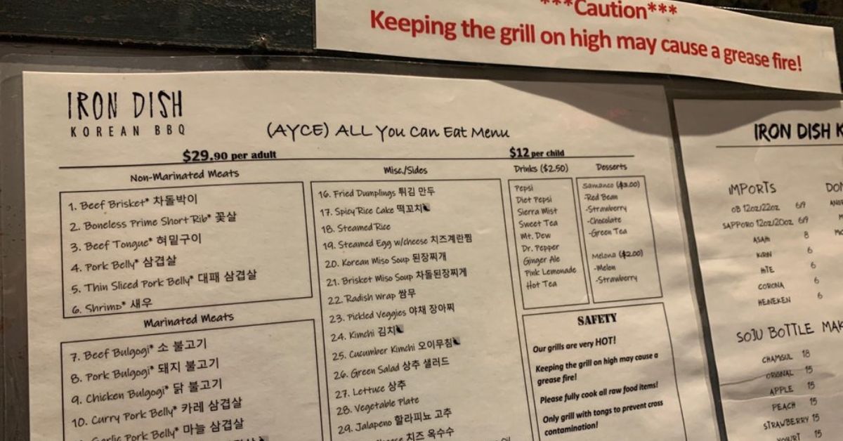 Iron Dish Korean BBQ Menu (Full Update Menu 2026)