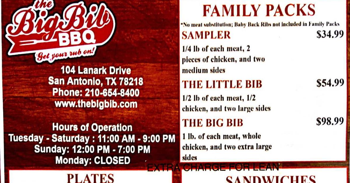 The Big Bib BBQ Menu has been a San Antonio favorite since founder Allen Mays first opened the doors in 2000. What began as a humble roadside smokehouse quickly became one of the city’s go-to spots for authentic Texas barbecue, thanks to its slow-smoked brisket, tender ribs, and rich, house-made sauces. As time goes by, the Big Bib expanded from a small local joint into a full-service BBQ destination known for quality, consistency, and that unmistakable backyard flavor.